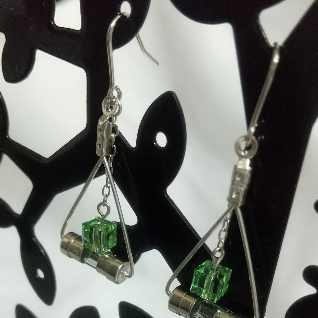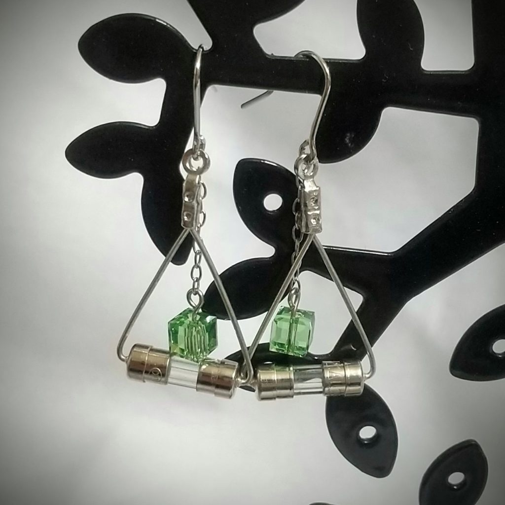 電子部品のガラス管ヒューズの見た目が好きで好きで作ったピアスです。