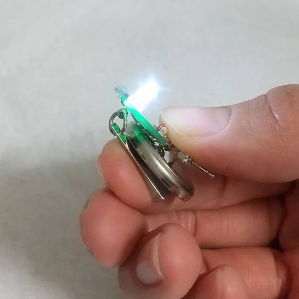 CR2032でなくても、3V以上のボタン電池であれば光ります。