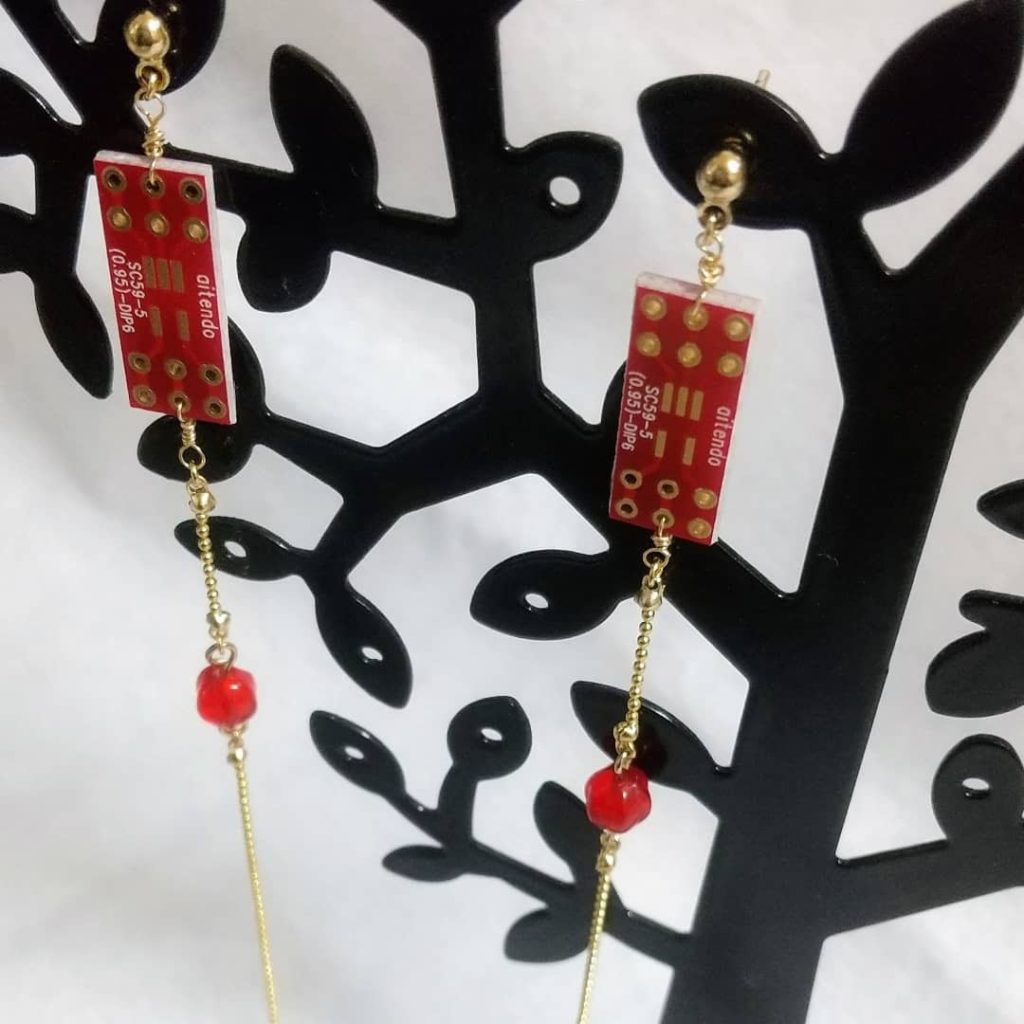 光る電子部品ピアス